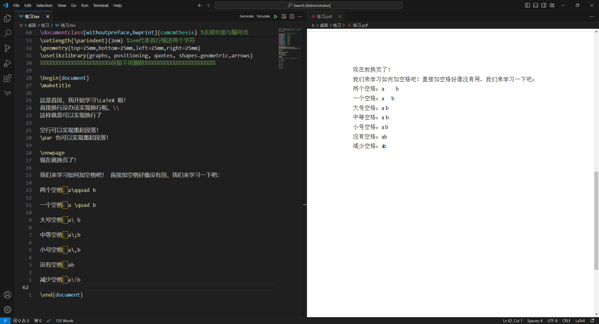 - 重起段落:直接换行是没有作用的,在LaTeX中,可以使用空行实现,或者使用命令
